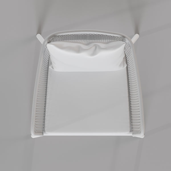 Crafted with a durable powder-coated metal frame and hand-woven outdoor rope for a stylish, weather-resistant design.